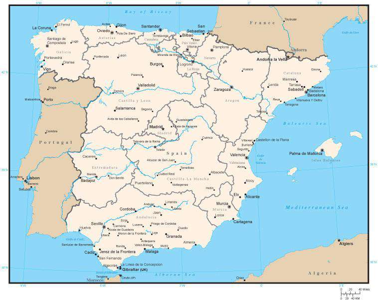 Map Of Spain With Capitals